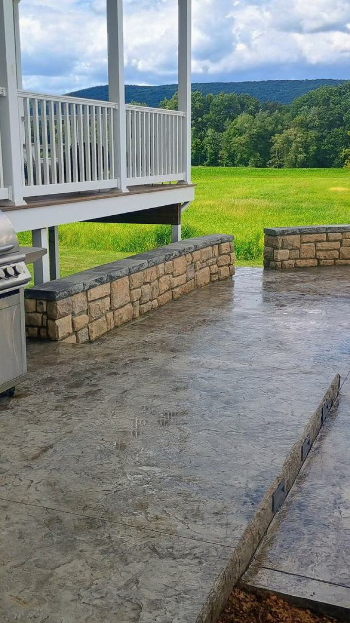We install outdoorkitchens with concrete countertops, gas or wood burning fireplaces, seatwalls built from landscaping block, or concrete blocks and stone veneer to match your house!