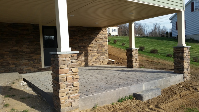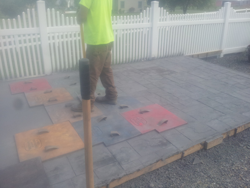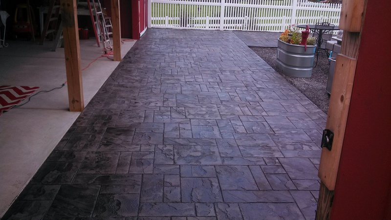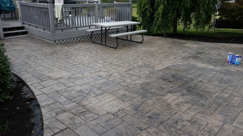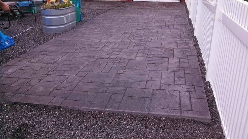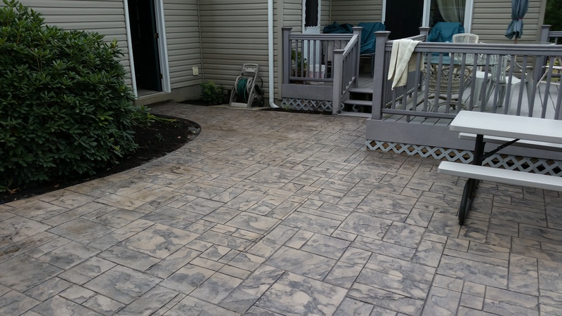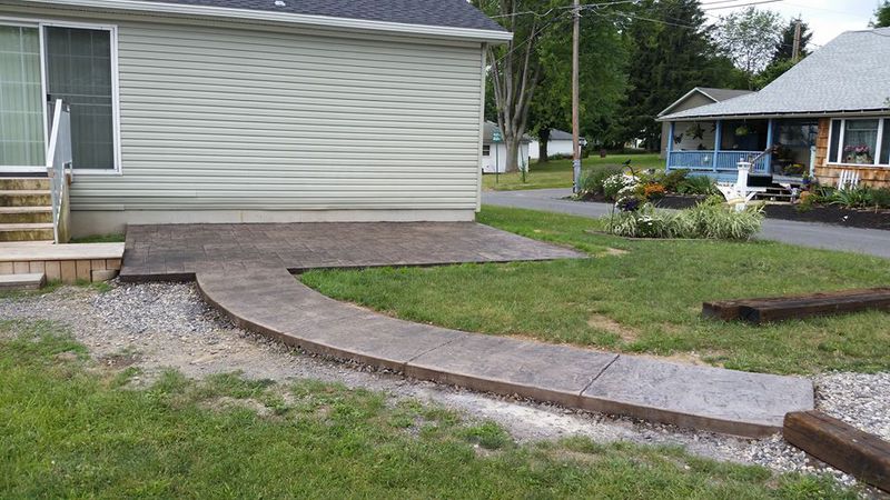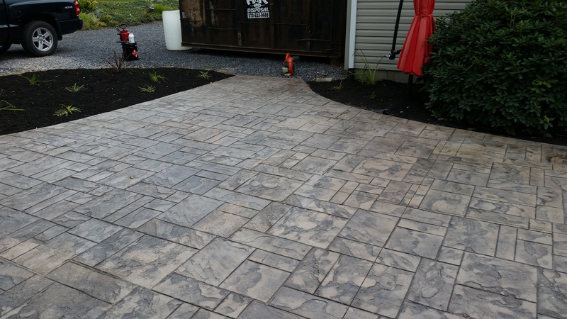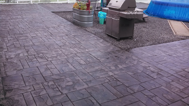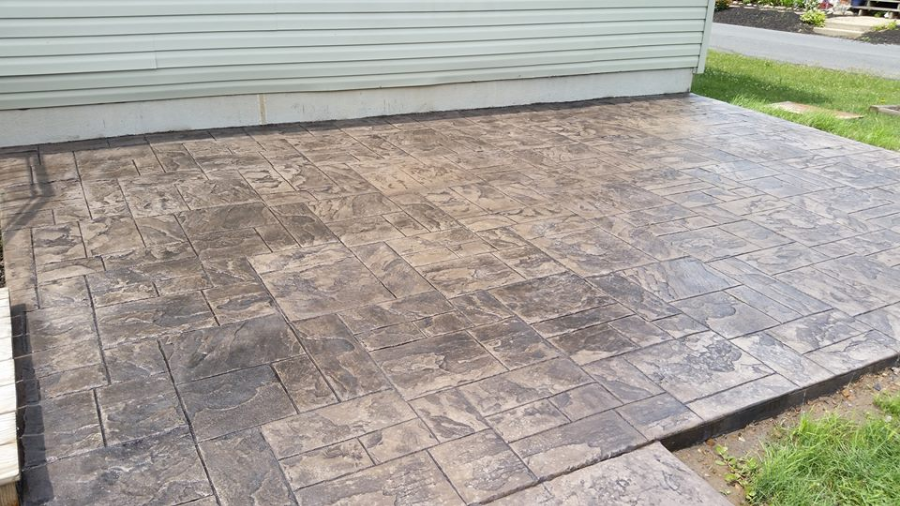 A stamped patio in Port Trevorton. Sandstone color with black accents.