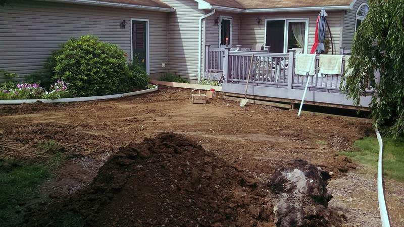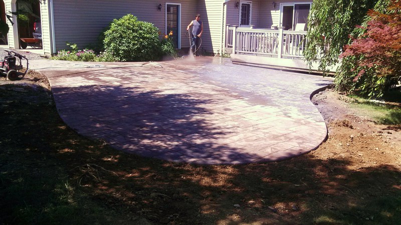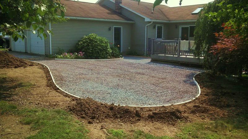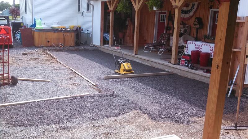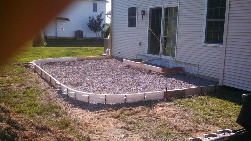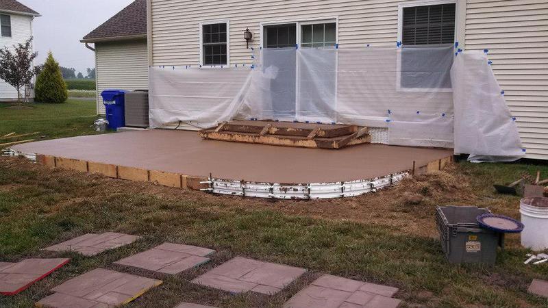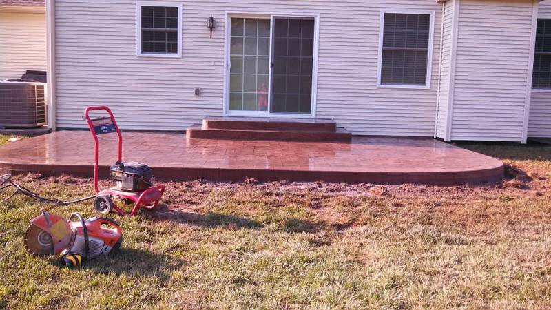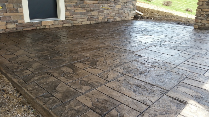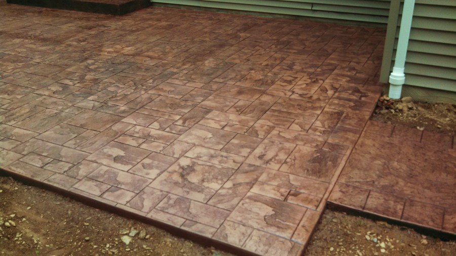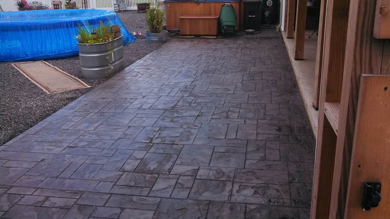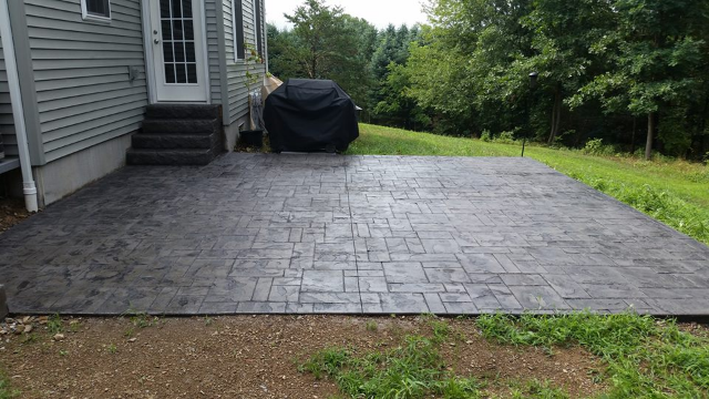 A stamped patio in Port Trevorton. Sandstone color with black accents.