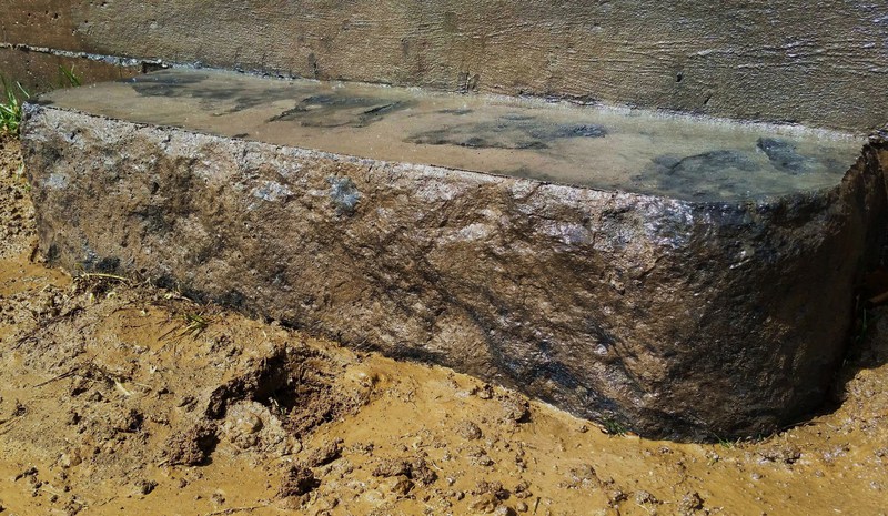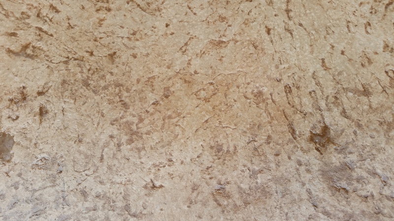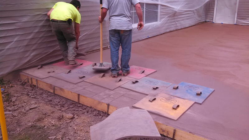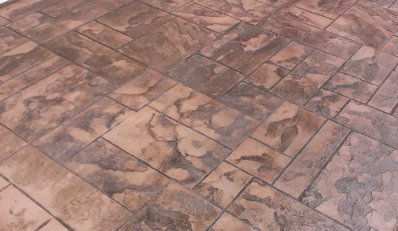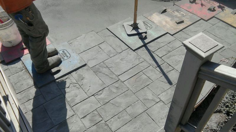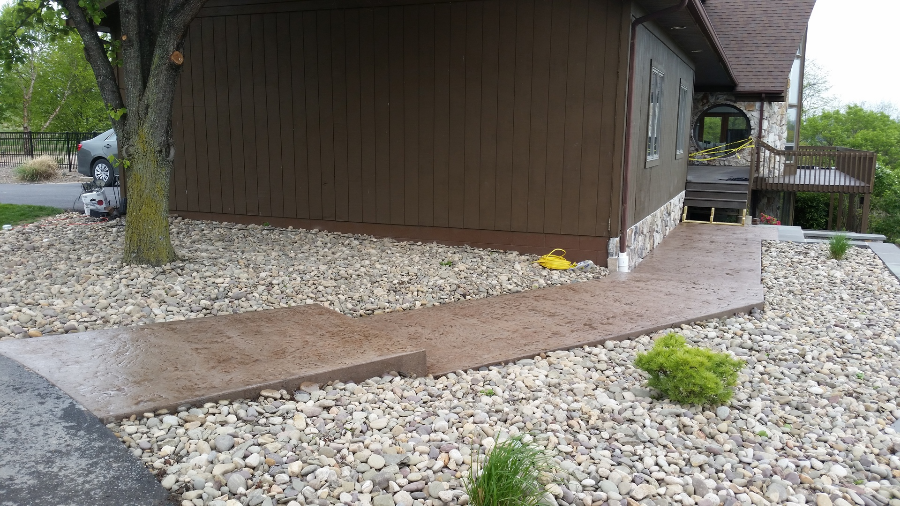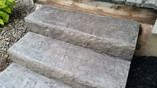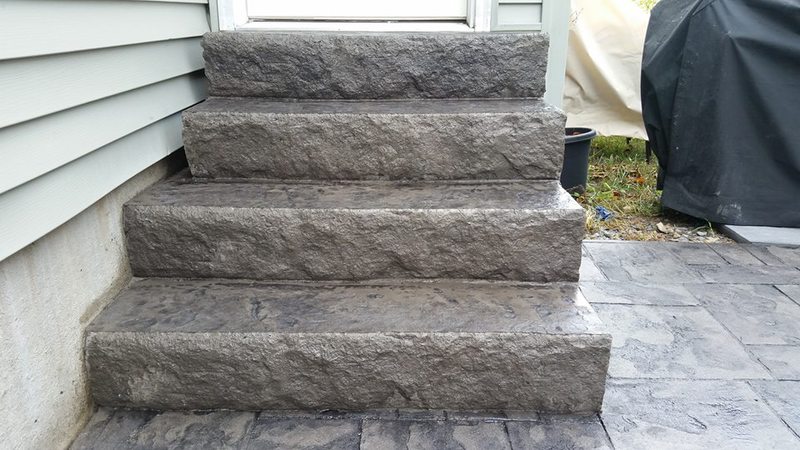 Sandstone integral color with Nutmeg accents in an Ashlar Slate pattern. The steps were formed with radius edges and smooth sides.
