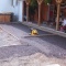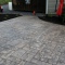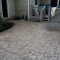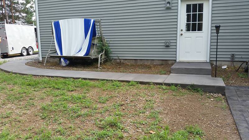 A patio and sidewalk in Shamokin Dam. Sandstone integral color with Black accents. The sidewalk is a Slate texture with textured joints instead of saw cuts.