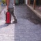 A sidewalk with Sandstone integral color and Saddle Brown accents in a Bluestone seamless texture.